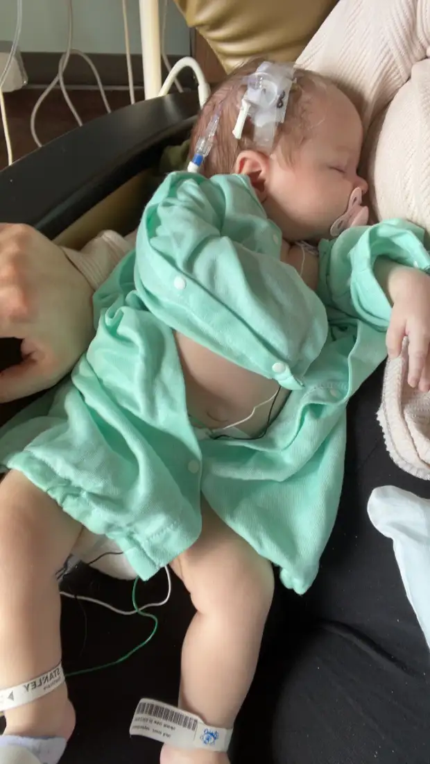 “At six weeks old, Jovie had a very high fever, so we went to the Emergency Room right away,” her mom shared. “After several tests, we learned she had bacterial meningitis that had been missed during my pregnancy. We were looking at a 15-day stay in the hospital for IV medication and monitoring.”