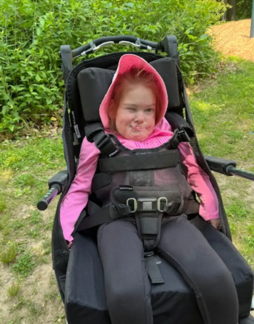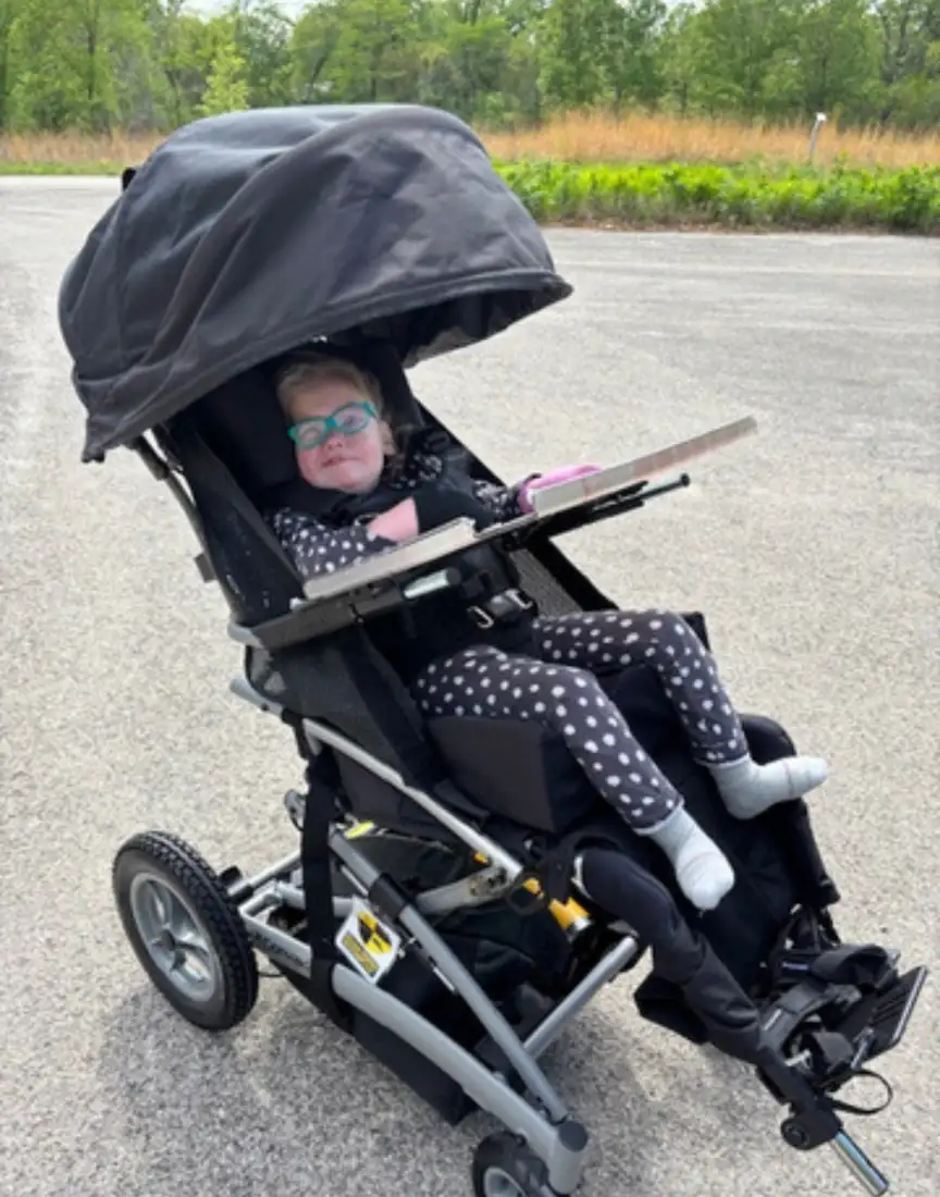 “Emmie’s adaptive stroller has made traveling and exploring so much easier. It provides the support she needs on bumpier routes and compacts quickly, which helps since we don’t yet have an accessible van. We’ve taken it on family trips to Decorah and Columbia, to School of the Wild at Lake MacBride, and to our favorite spot - Kent Park in Tiffin. She’s now too big to carry on our backs, and this equipment has allowed us to keep including her in the outdoor adventures we love."